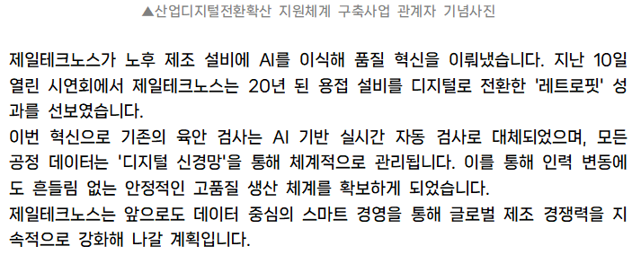 제일테크노스, AI로 노후 설비 깨우다... DX 혁신 성과 공개
